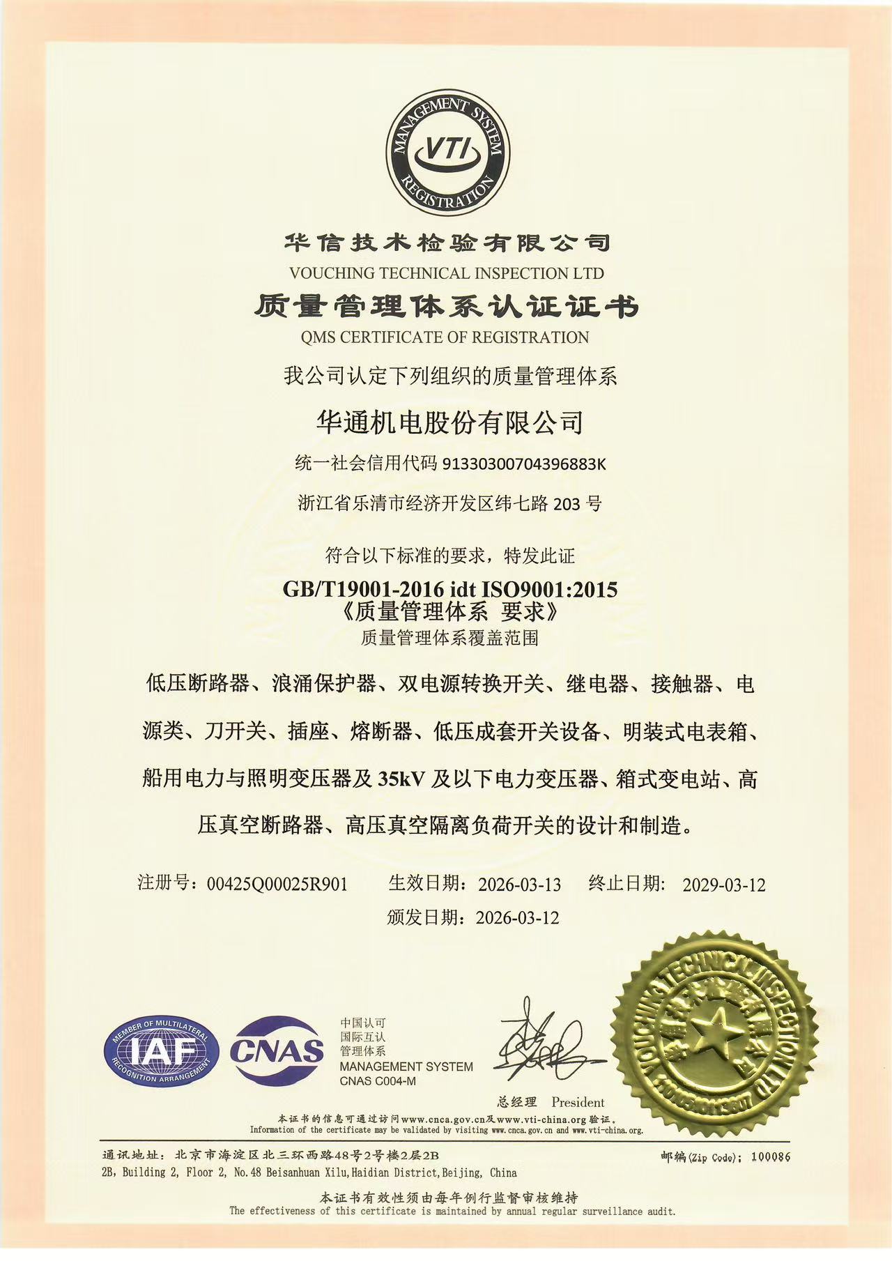 華通機電能源體系證書